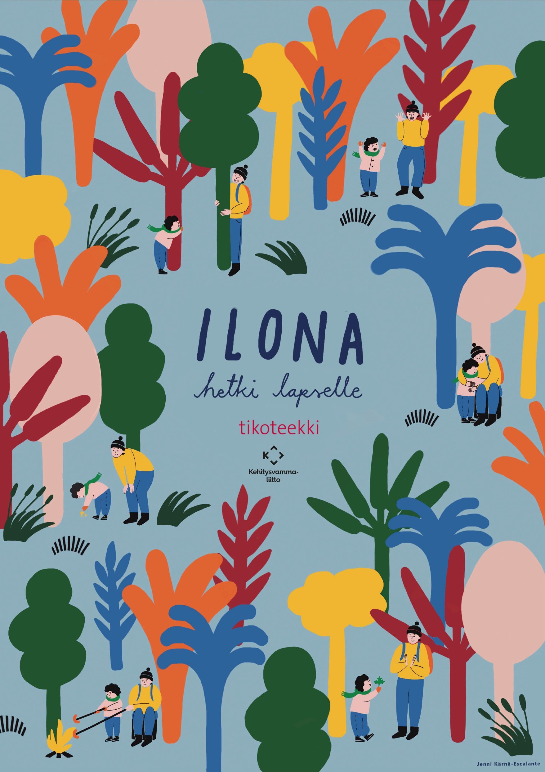 Cover illustration for a set of cards that help to support the communication between a child and an adult. ILONA- cards are a helpful tool for disabled or autistic children and their parents/caregivers.