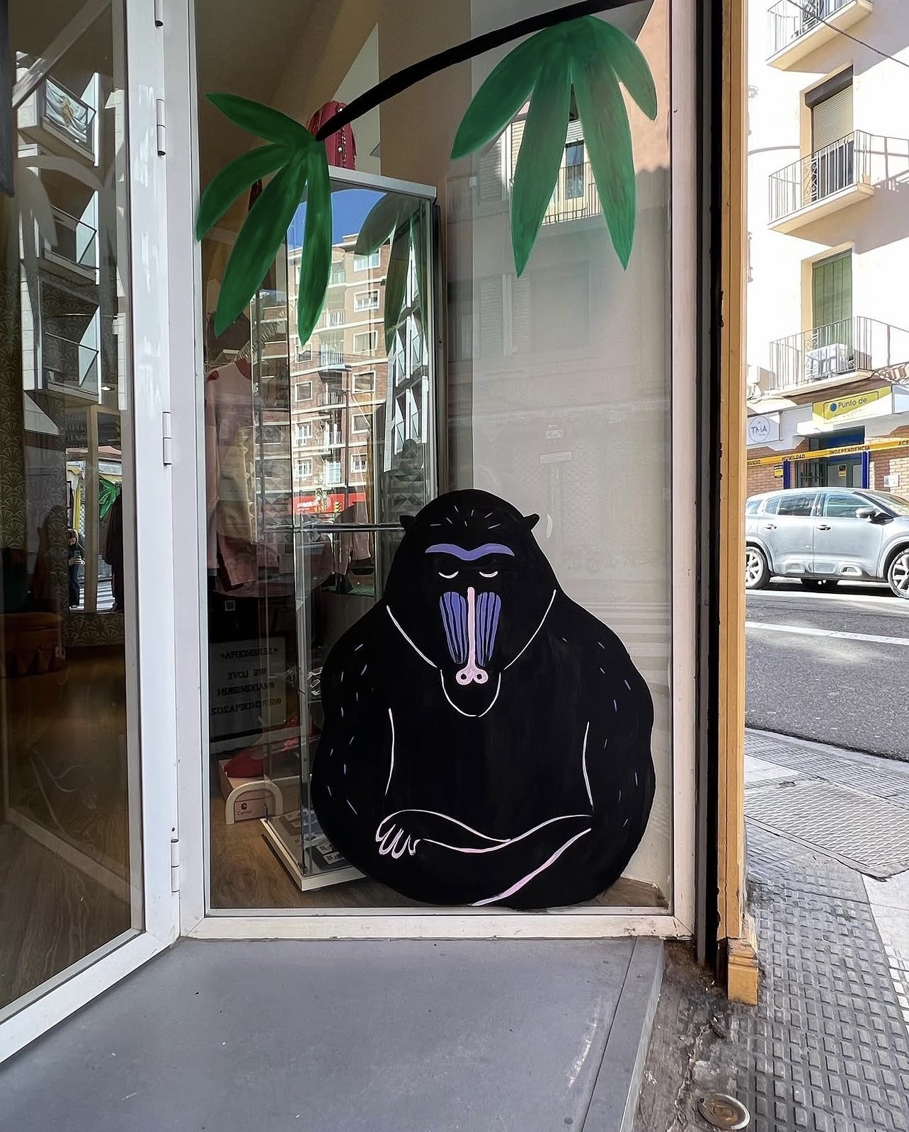 A monkey themed window painting for a small boutique called Serendipia in Zaragoza.